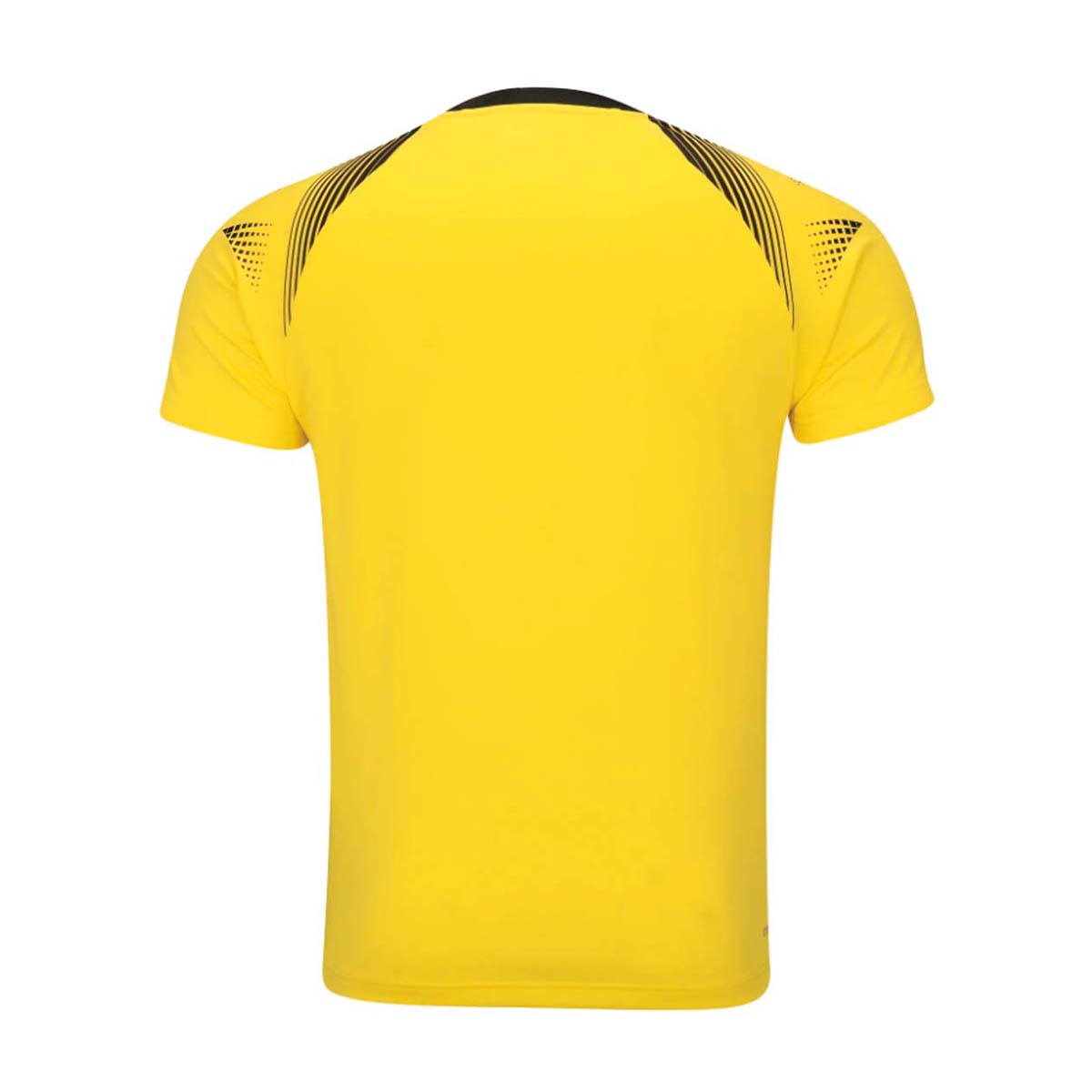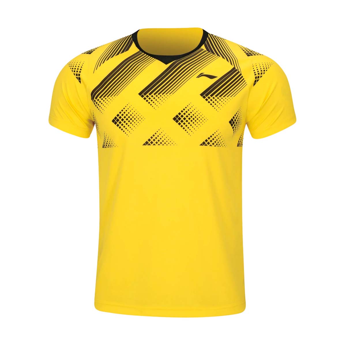 Ярко-желтая футболка с динамичными черными вставками, привлекающая внимание своим стильным дизайном. Изготовлена из 100% полиэстера, обеспечивающего отличную воздухопроницаемость и быстрое высыхание, что позволяет сохранять сухость и комфорт во время самых интенсивных тренировок и матчей. Черный логотип Li-Ning на левой груди подчеркивает качество и надежность бренда.
