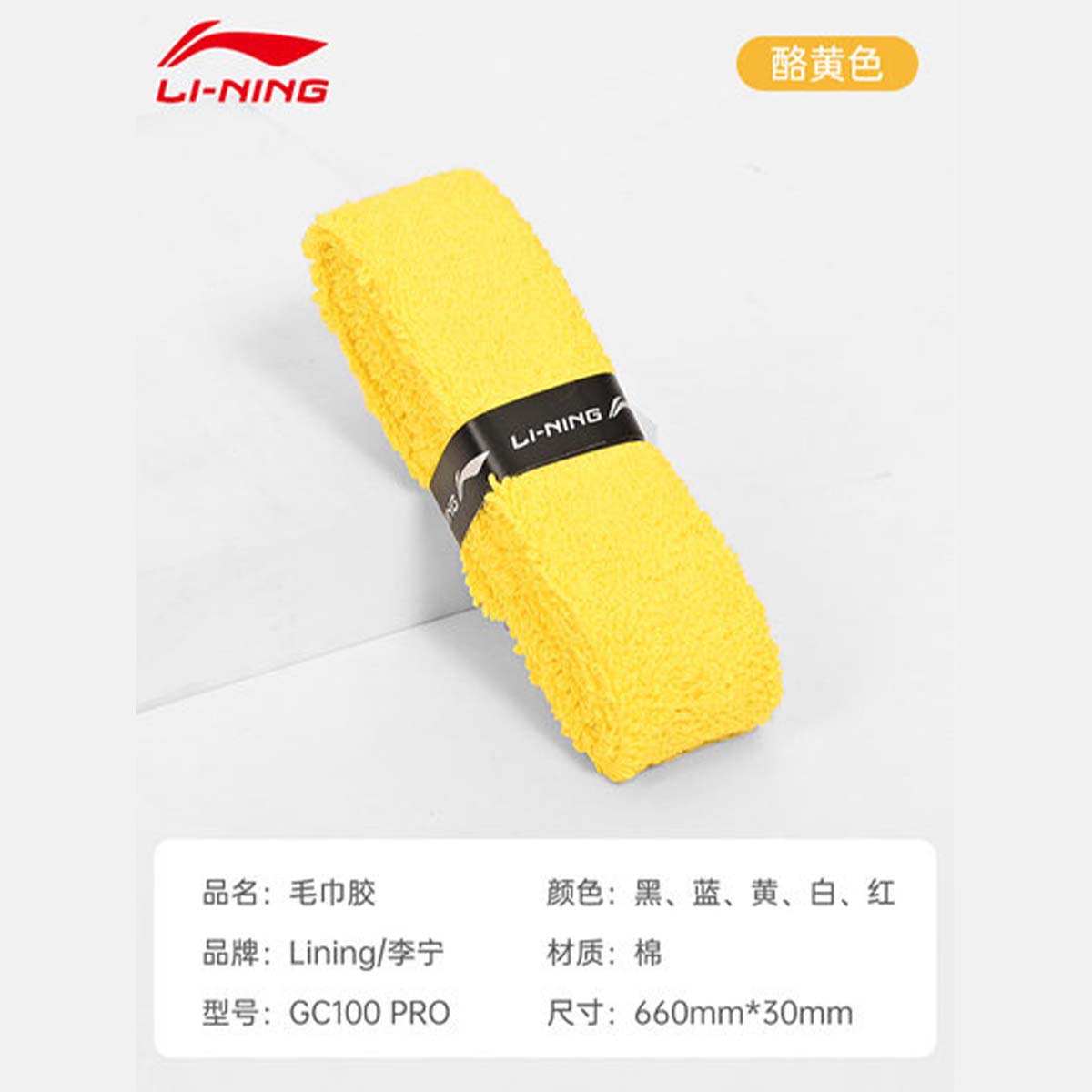 Представляем вам профессиональную махровую обмотку LI-NING GC100PRO желтого цвета— идеальный выбор для игроков, которым нужна максимальная защита от влаги и исключительная износостойкость.