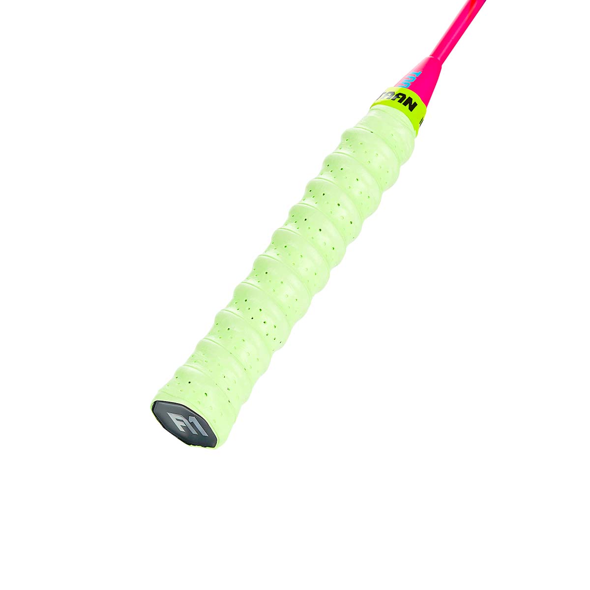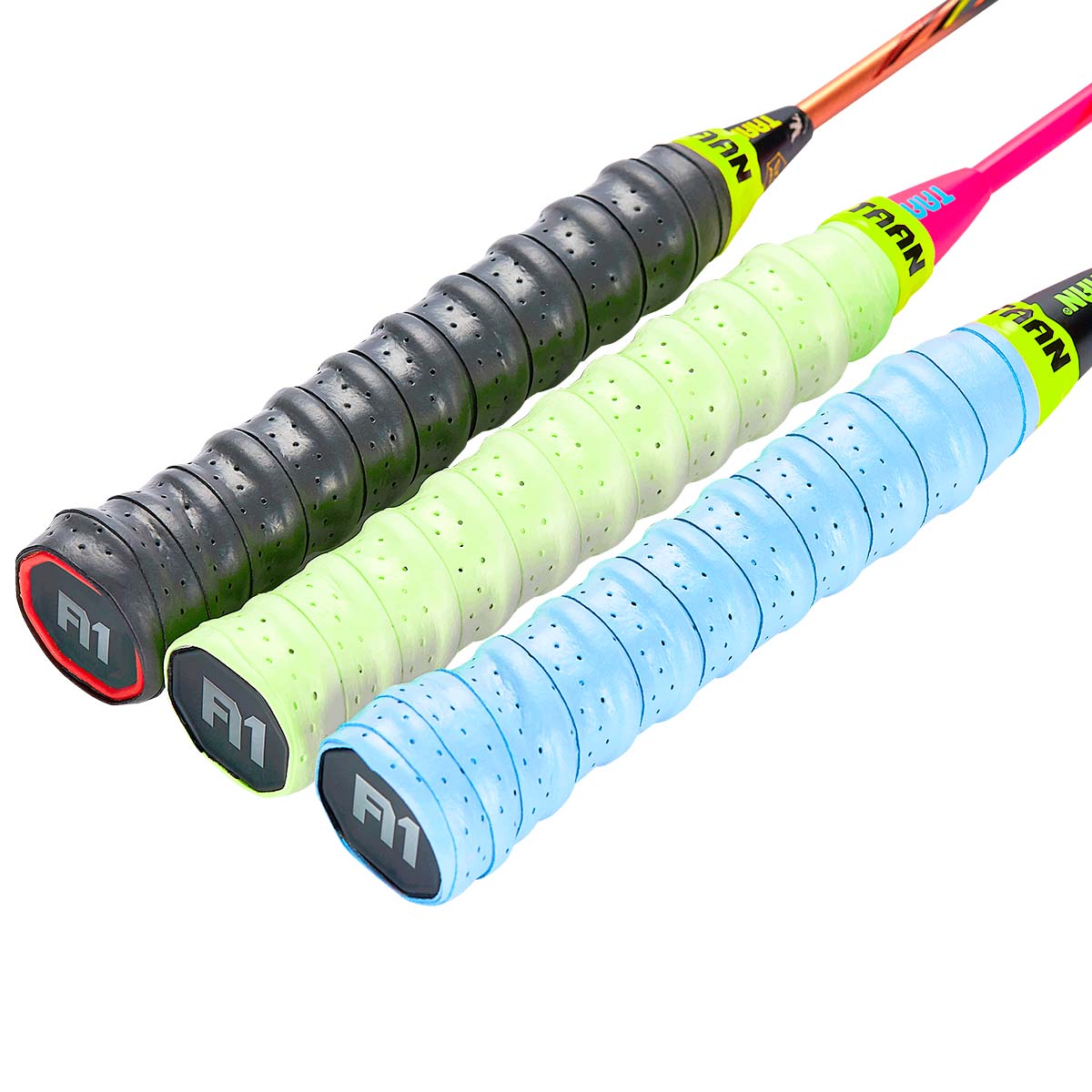 Особенностью обмотки является рельефная полоска из мягкой резины, нанесенная посередине. Эта полоска создает упругий бугорок после круговой намотки на рукоять, что дает ощущение надежного хвата и способствует гашению вибраций после ударов по волану.