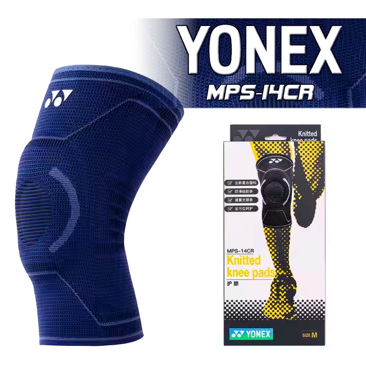Суппорт на колено Yonex MPS-14CR темно-синего цвета с силиконовым кольцом-протектором специально разработан для защиты от повреждений во время активных занятий спортом.