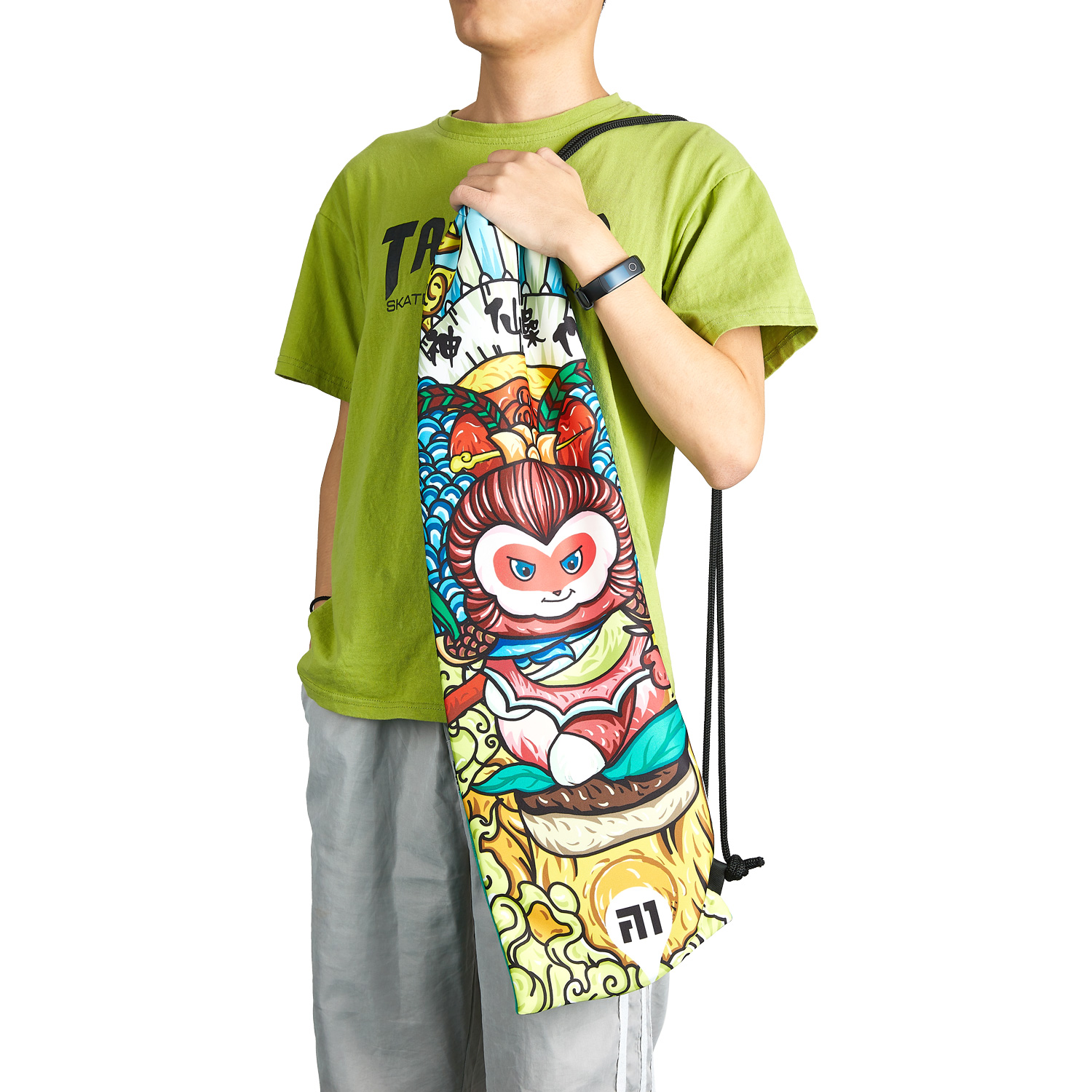 Высококачественные краски гарантируют, что рисунок останется ярким и насыщенным на протяжении всего времени эксплуатации. А прочный синтетический шнурок обеспечивает удобство переноски и надежное утягивание, позволяя легко брать чехол с собой на тренировки или соревнования.