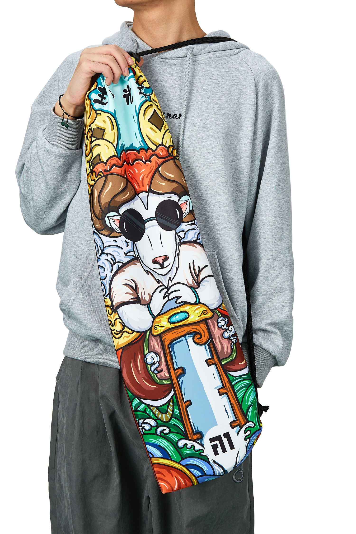 Высококачественные краски гарантируют, что рисунок останется ярким и насыщенным на протяжении всего времени эксплуатации. А прочный синтетический шнурок обеспечивает удобство переноски и надежное утягивание, позволяя легко брать чехол с собой на тренировки или соревнования.