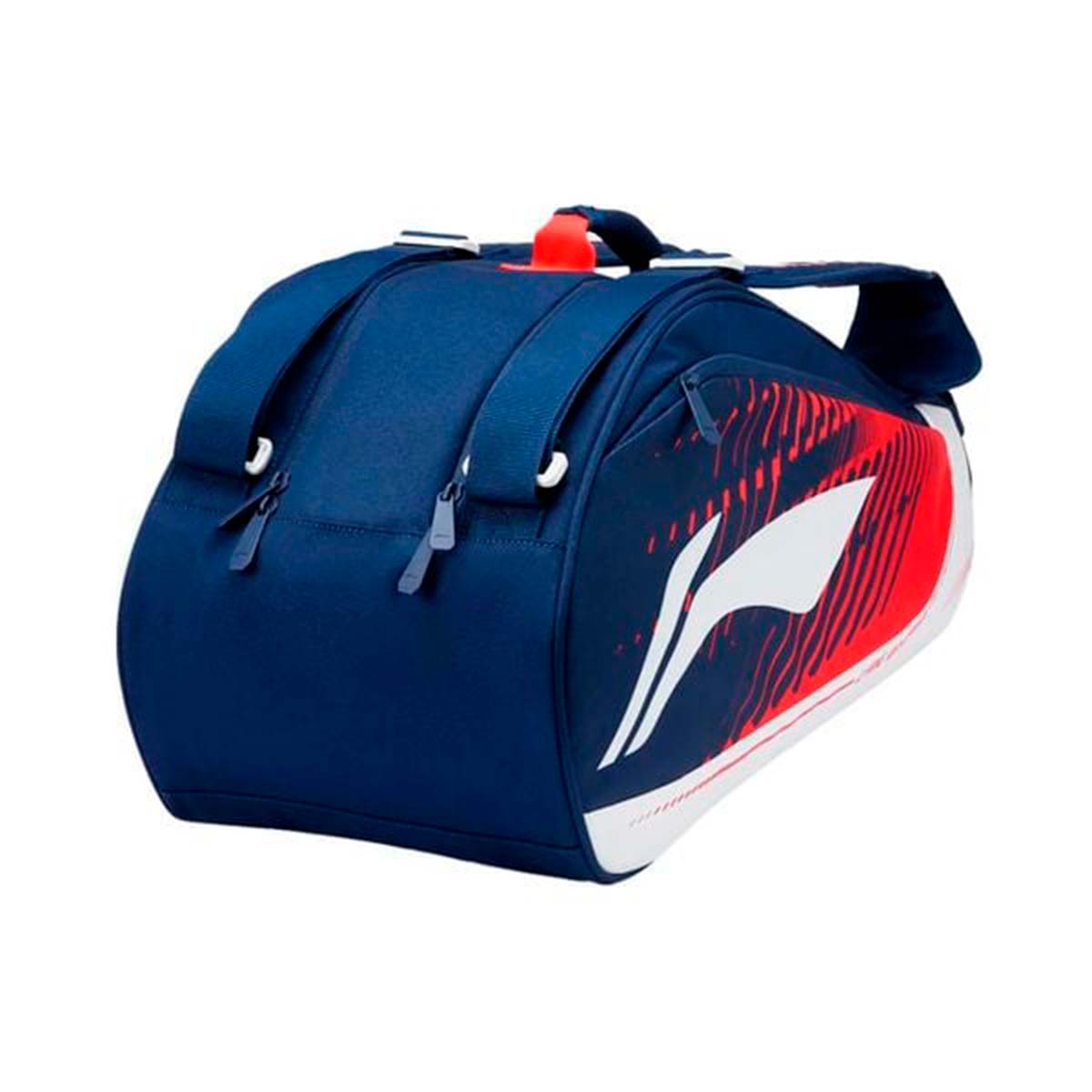 Сумка LI-NING синего цвета с красными элементами – идеальный выбор для игроков в бадминтон, ценящих надежность и стиль. Изготовленная из высококачественного полиэстера и полиуретана, она обеспечивает защиту от влаги и механических повреждений, гарантируя долговечность и сохранность вашего инвентаря.