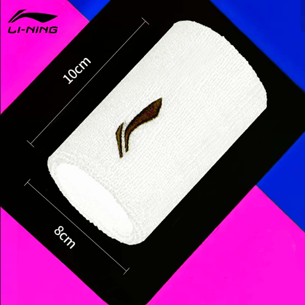 Мягкий напульсник Li-Ning AHWR010 белого цвета шириной 8 см и длиной 10 см отлично впитывает пот, не растягивается, быстро сохнет, не теряет яркость расцветки.