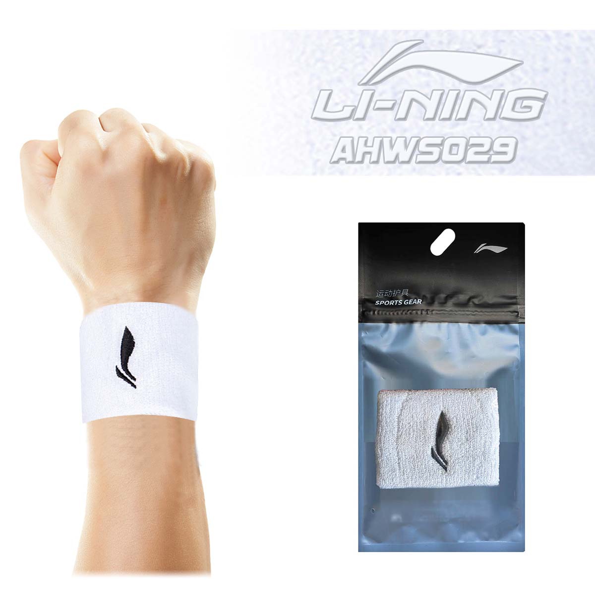 Напульсник Li-Ning AHWS029 белого цвета является незаменимым аксессуаром во время непрерывных движений, таких как бадминтон.