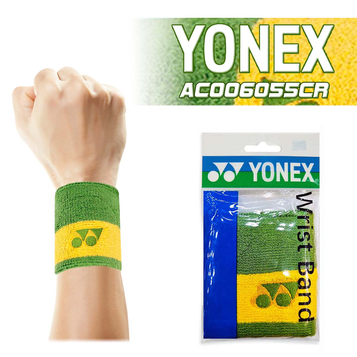 Яркий, стильный и функциональный, напульсник YONEX AC006055CR в сочном сочетании зеленого и желтого – это не просто аксессуар, а неотъемлемый элемент экипировки для спортсменов, ценящих комфорт и качество.