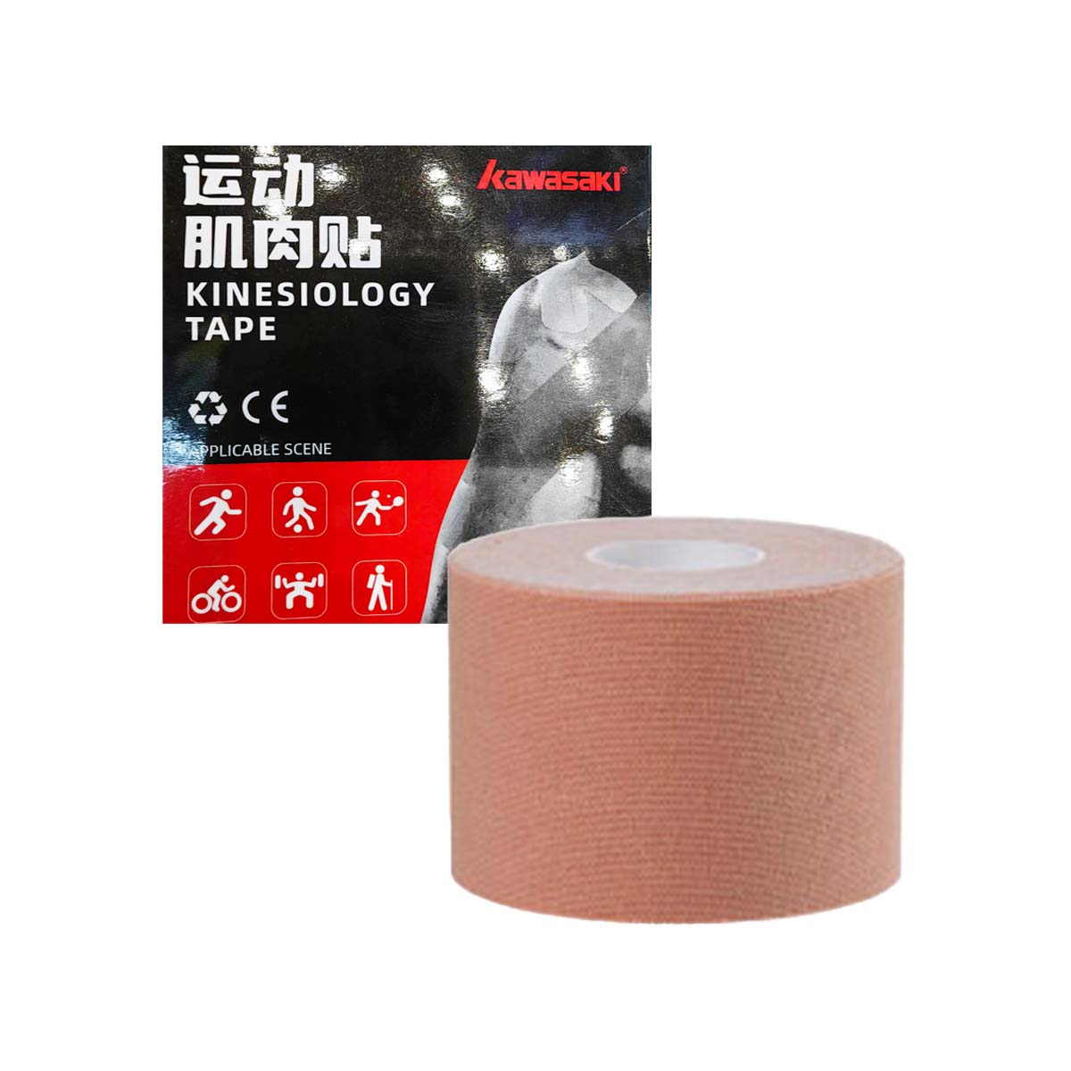 Kинезио тейп KAWASAKI K1E00-B3102 BEIGE - эластичная клейкая лента бежевого цвета применяется в спорте — для повышения выносливости и снижения риска травм суставов.