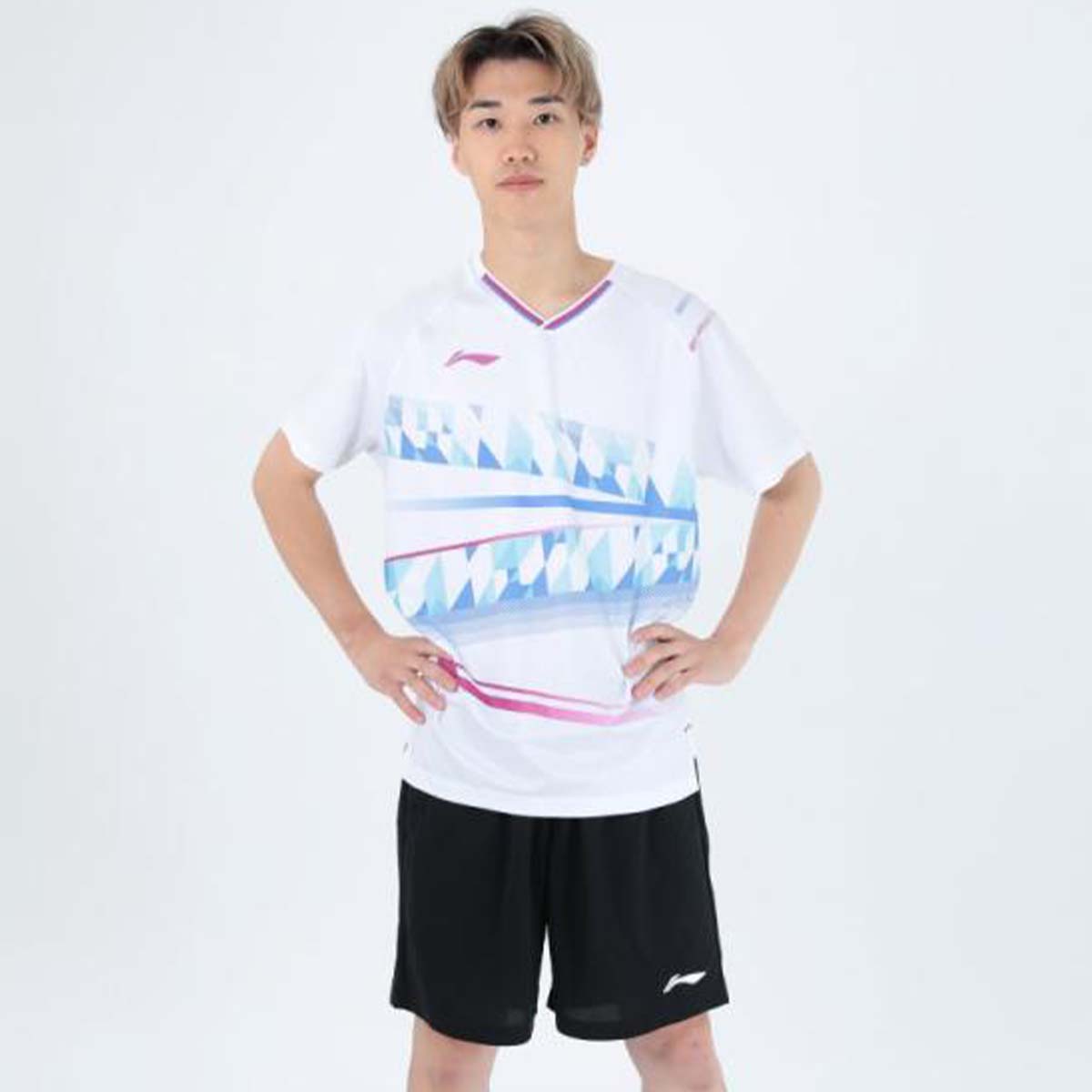 Мужская игровая футболка LI-NING AAYU131 из коллекция одежды для международных соревнований 2024 года изготовлена из экологически чистого переработанного волокна и ткани с 3D-рельефным механизмом, не прилипает к коже при потоотделении и обладает антибактериальными свойствами.