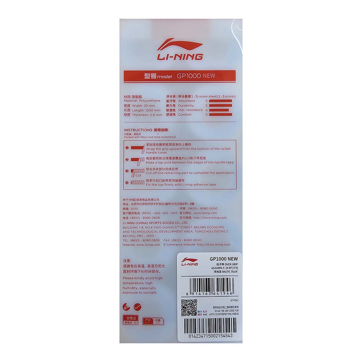 Модель имеет толщину 0,6 мм, тоньше на 0,05 мм обмотки LI-NING GP1000-A.