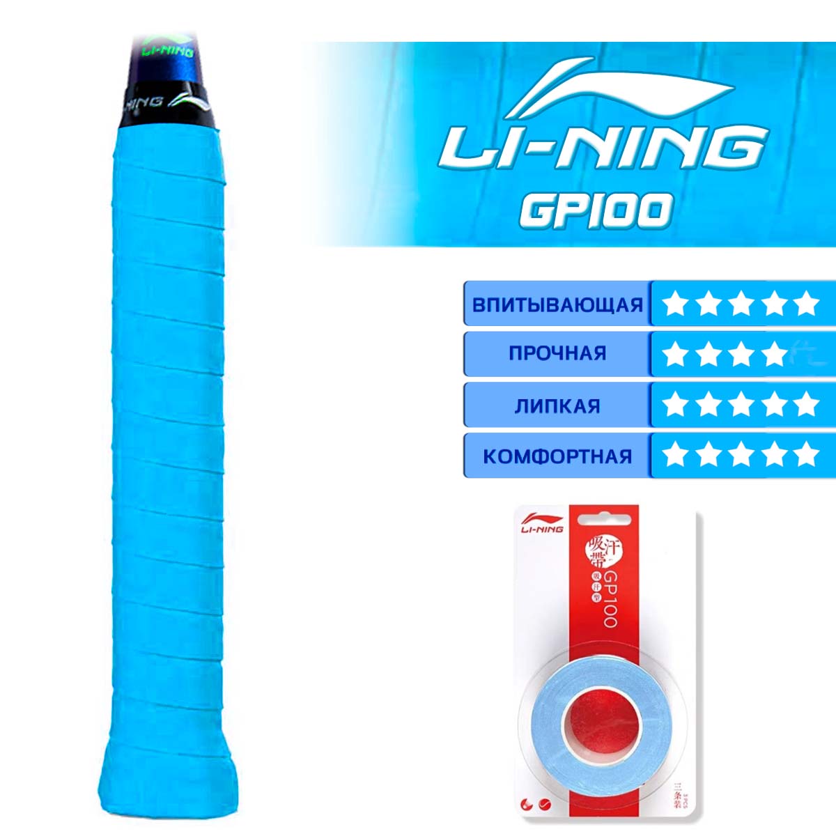 Набор Li-Ning GP100 BLUE состоит из 3 обмоток голубого цвета.