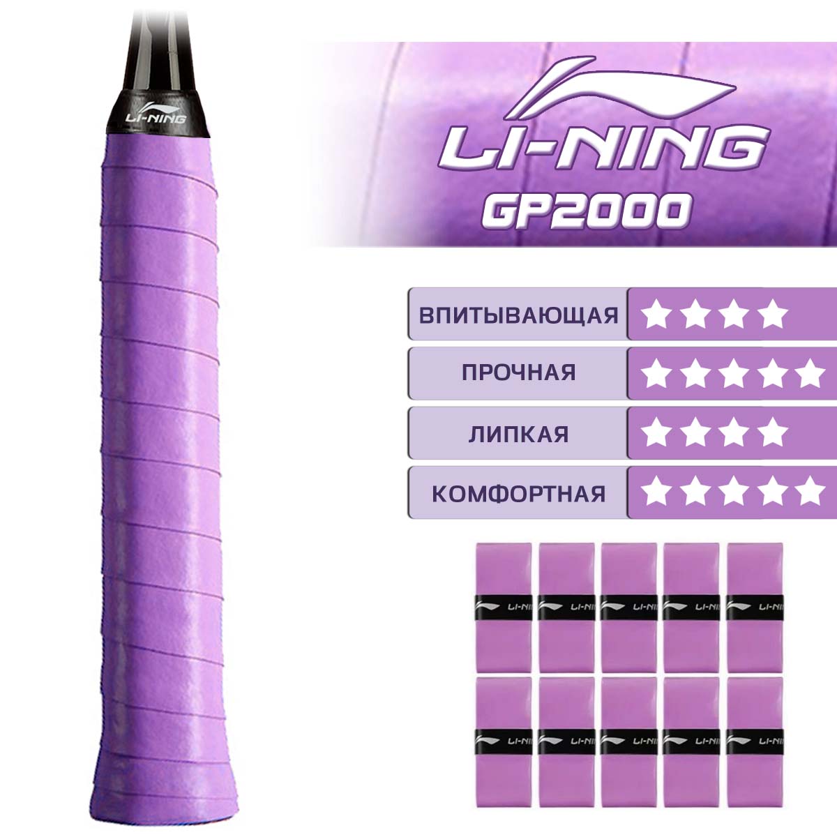 Набор ароматизированных обмоток LI-NING GP2000 LAVANDA действительно выделяется своим дизайном и функциональностью, состоящий из 10 штук одного цвета.
