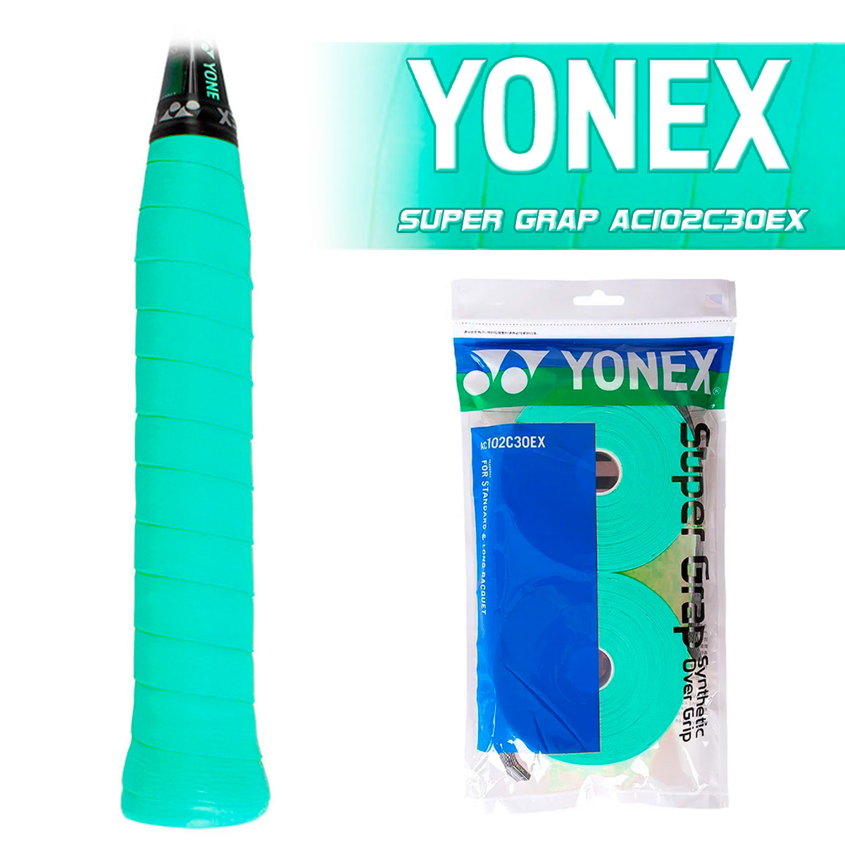 Тонкая полиуретановая обмотка YONEX AC102C30EX MINT продается набором из двух рулонов мятного цвета в каждом по 15 штук.