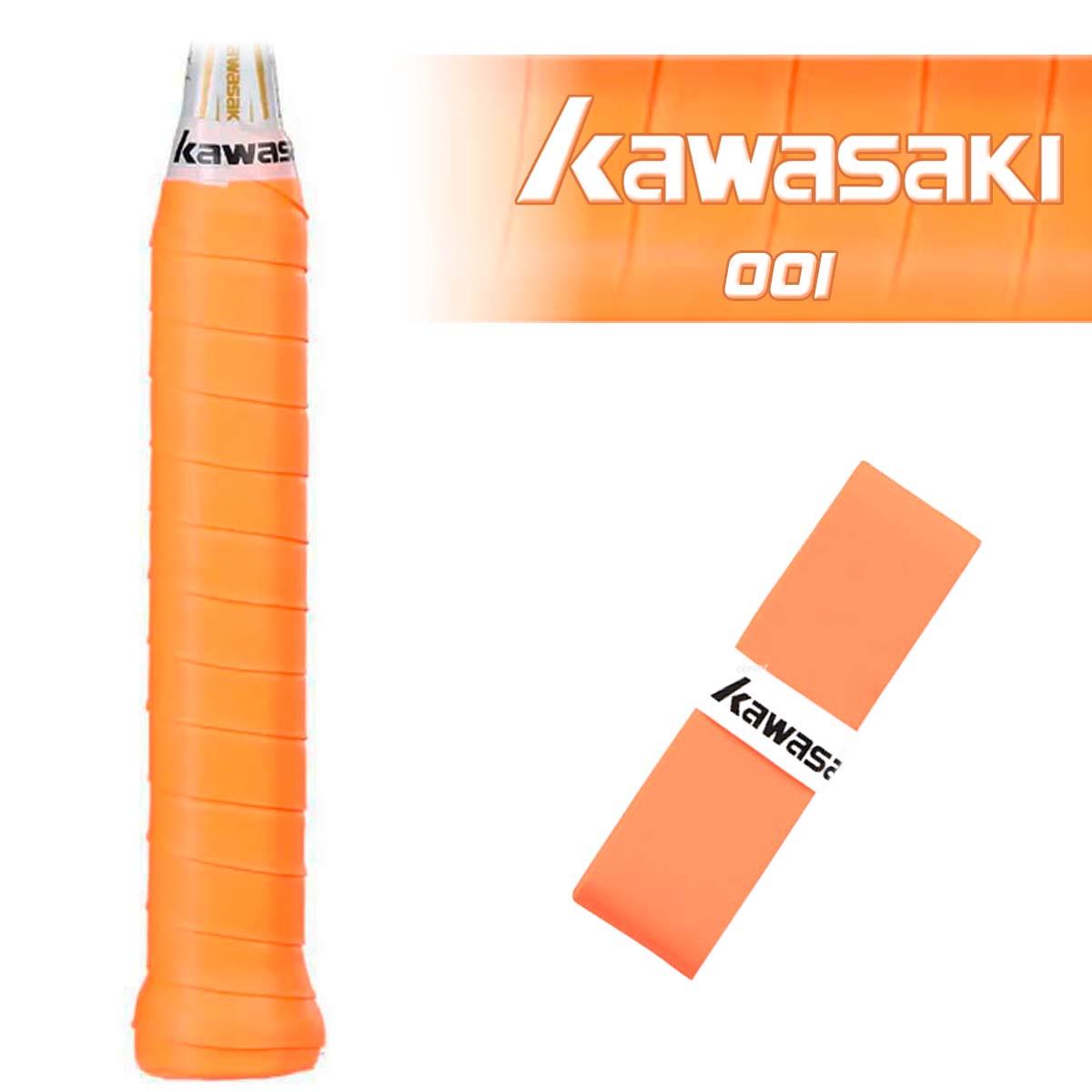 Тонкая обмотка KAWASAKI 001 оранжевого цвета предназначенная для бадминтона и других ракеточных видов спорта.