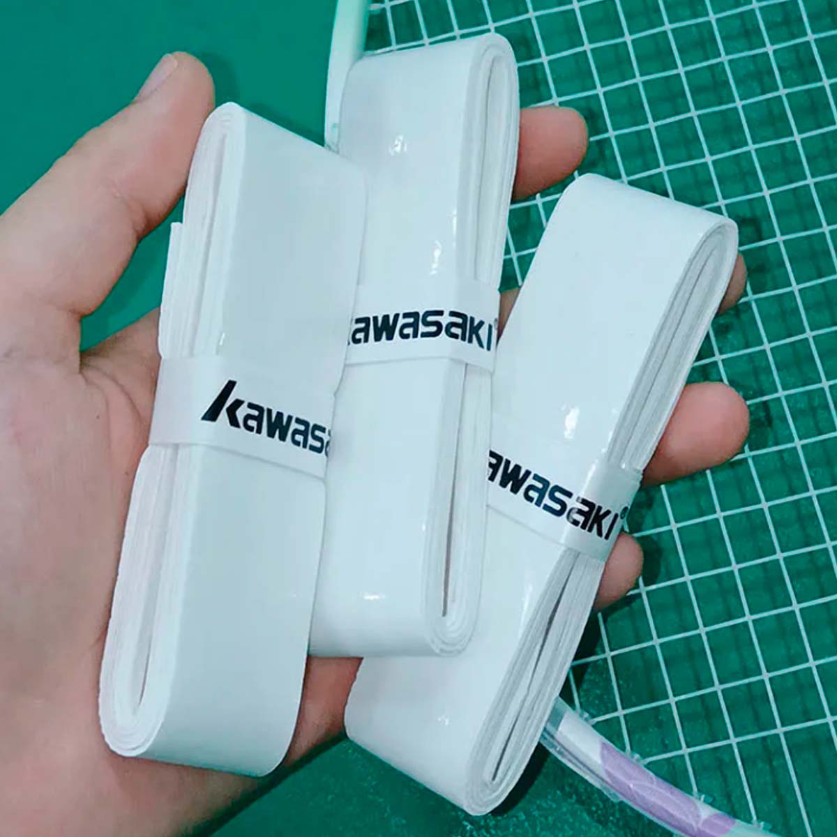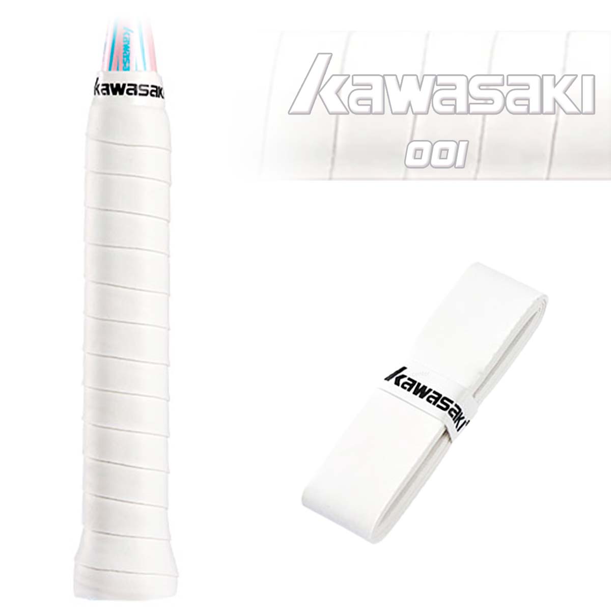 Тонкая обмотка KAWASAKI 001 WHITE предназначенная для бадминтона и других ракеточных видов спорта.