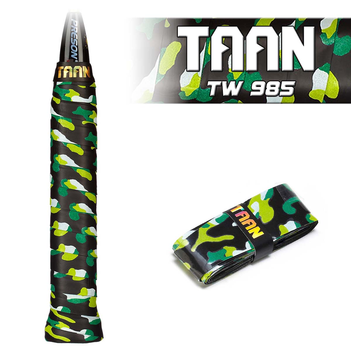 Рисунок на внешнем слое обмотки TAAN TW 985 позволяет игрокам выделиться на корте и добавить своему образу индивидуальности.