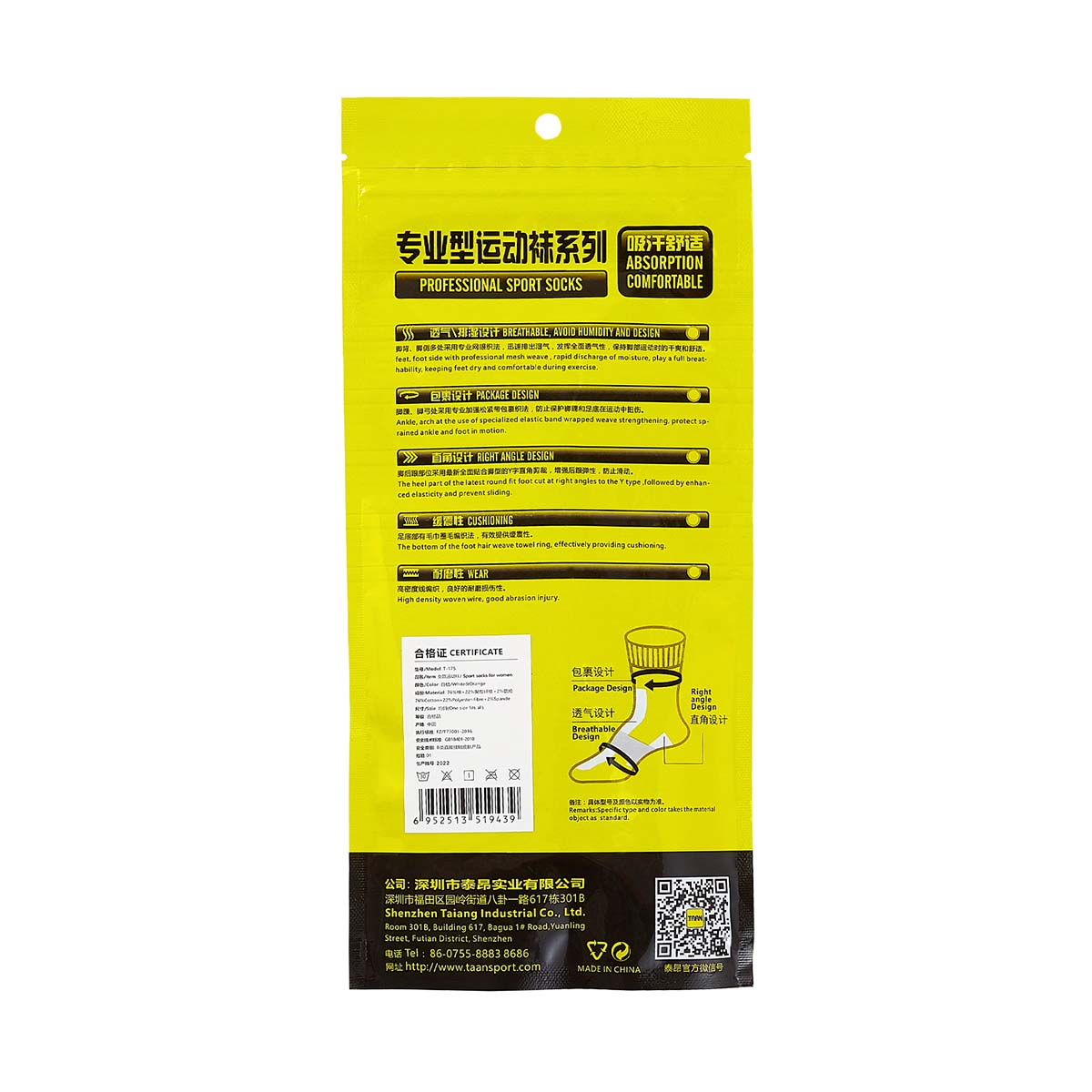 Носки TAAN T-175 YELLOW