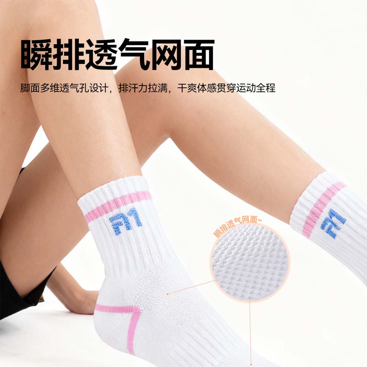 Зональная вентиляция: Расширенная зона на подъеме стопы активно отводит тепло и влагу, сохраняя ноги сухими на протяжении всей тренировки.