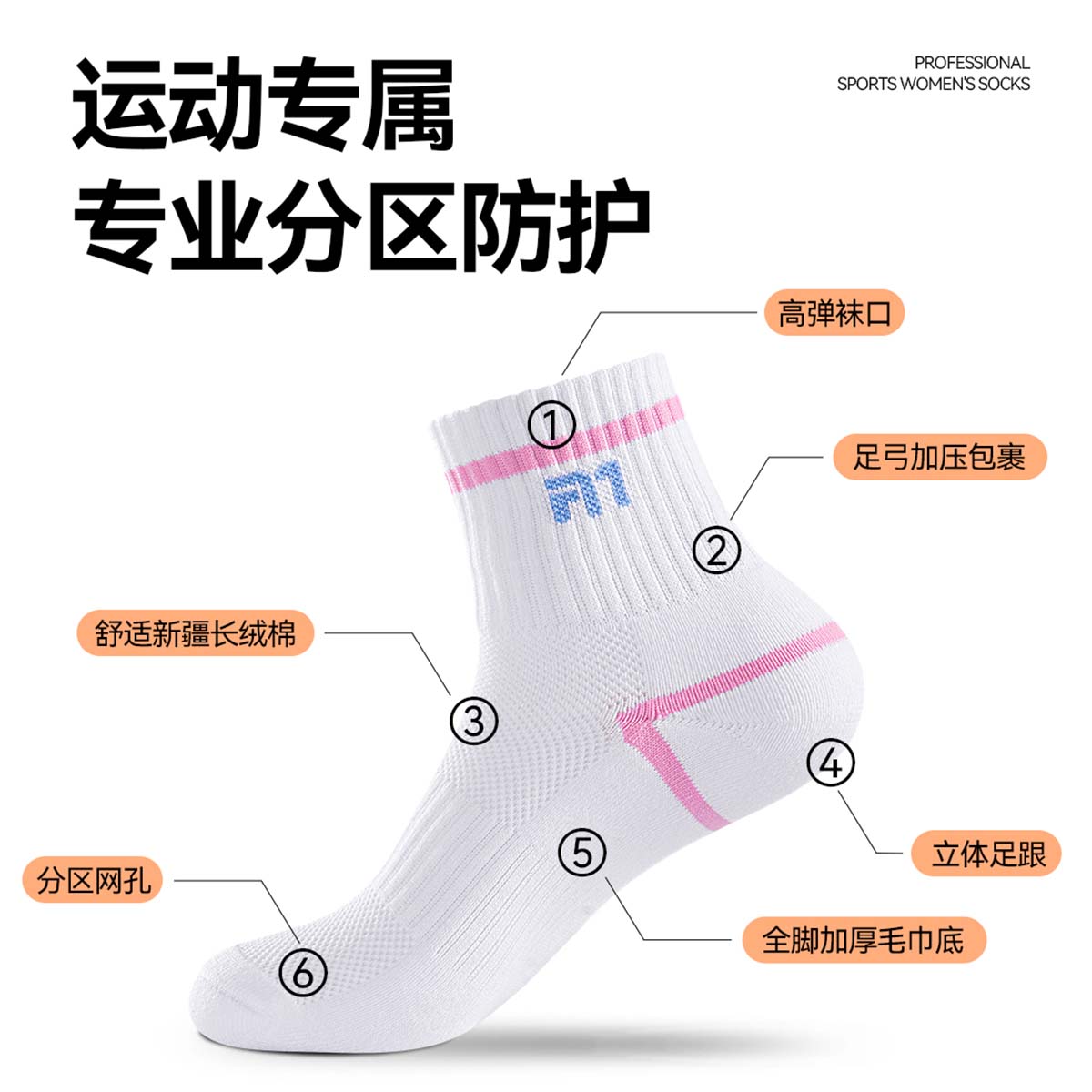 Махровая амортизация: Утолщенная махровая структура на пятке и стопе эффективно гасит ударные нагрузки при беге и прыжках, защищая суставы и снижая усталость ног.