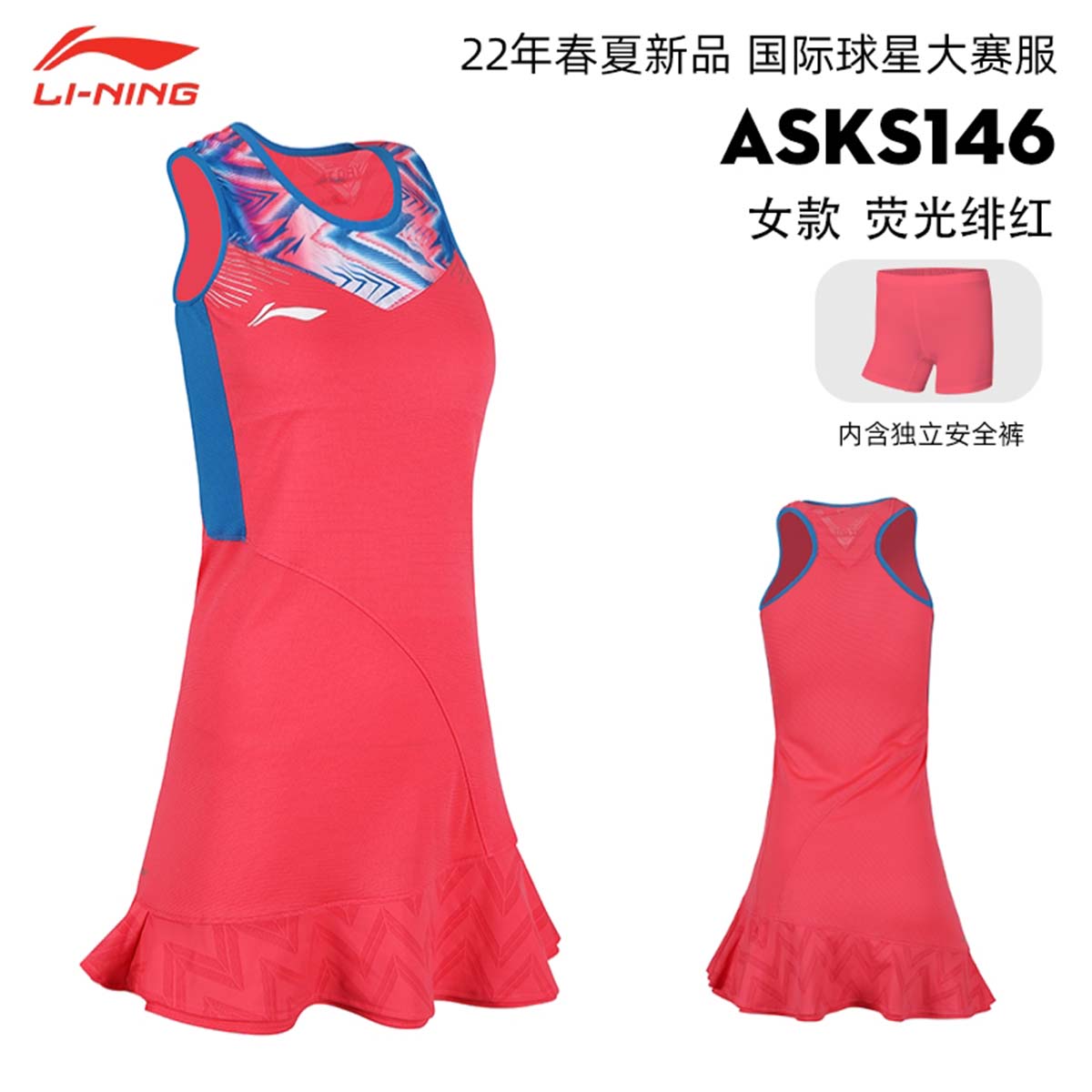 Платье с шортами красного цвета Li-NING ASKS146 идеально подходит для игры в бадминтон на любом уровне, активных тренировок и соревнований.
