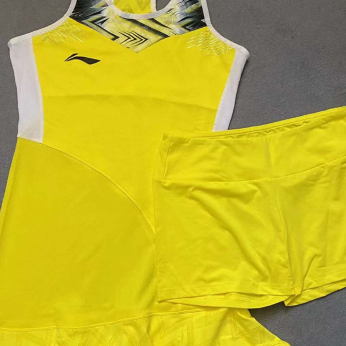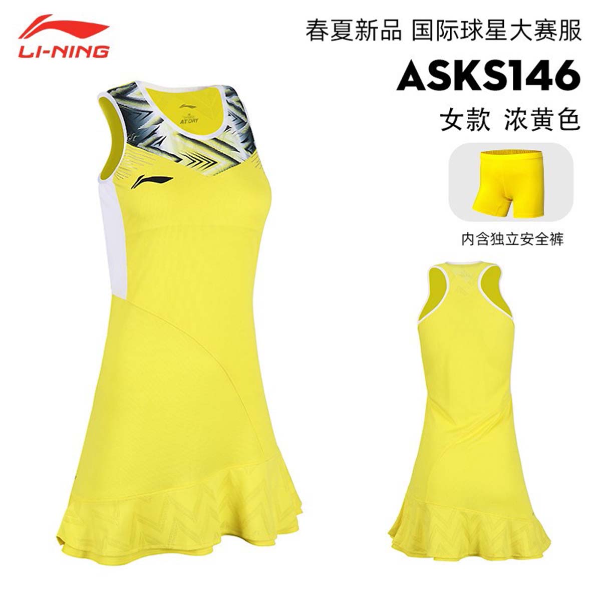 Платье с шортами желтого цвета Li-NING ASKS146 идеально подходит для игры в бадминтон на любом уровне, активных тренировок и соревнований.