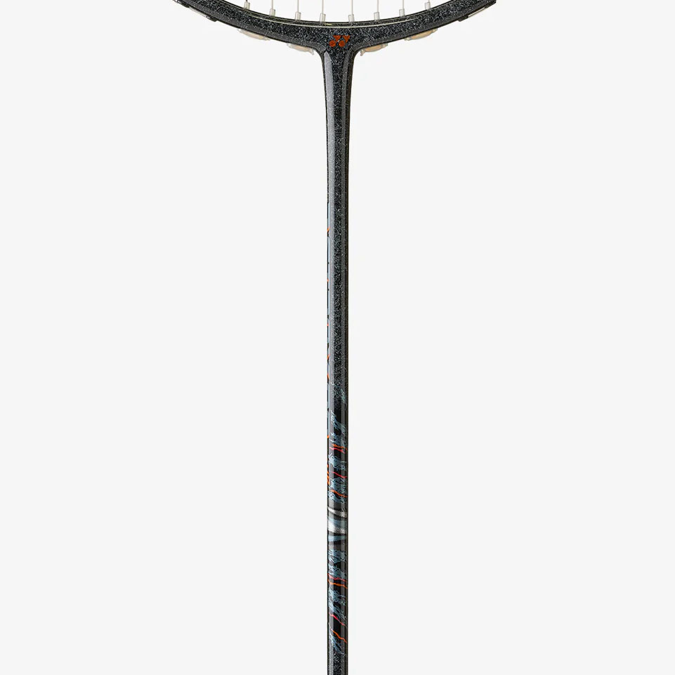 Технология усиления места соединения обода со стержнем ракетки. Глубоко встроенный в слои графита Т-образный шарнир создает прочную и долговечную конструкцию, препятствующую чрезмерному скручиванию ракетки