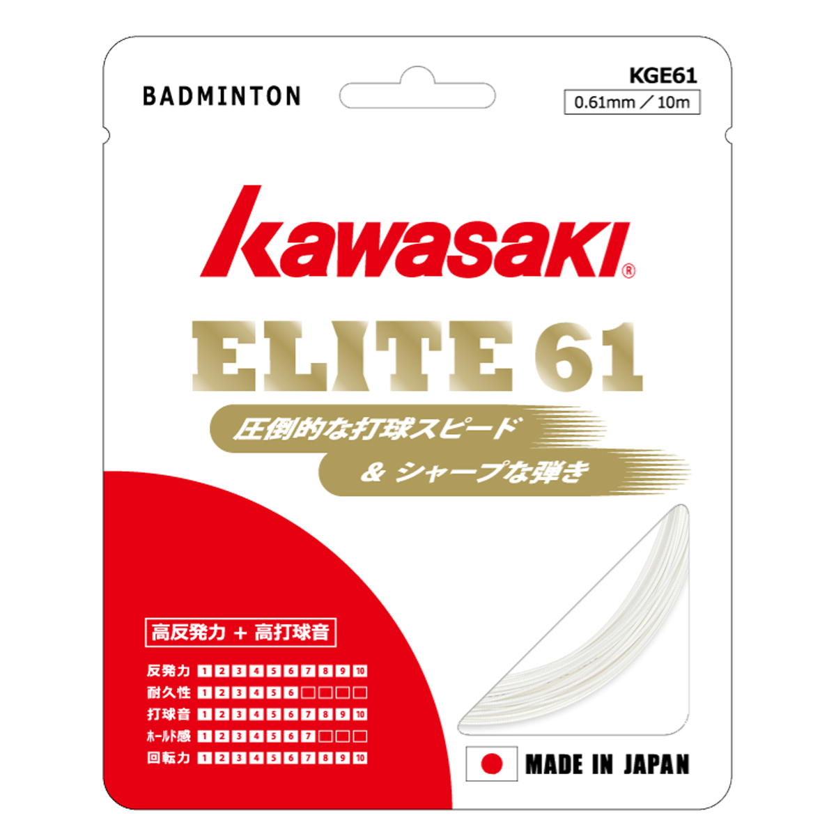 Бадминтонная струна ELITE 61 от KAWASAKI белого цвета - это тонкая струна для бадминтона, толщина всего 0.61 мм, предназначенная для профессиональных игроков.