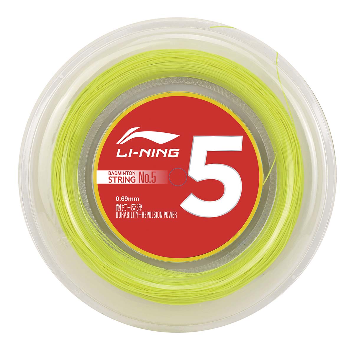 Струна для бадминтона LI-NING №5 в желто-неоновом цвете — широко используется ведущими международными игроками. Несмотря на то, что в профессиональном спорте превалирует выбор тонких струн, многие игроки считают, что хоть тонкие струны и хороши по звуку, но они не могут обеспечить достаточную мощность удара. Поэтому бадминтонисты высокого уровня нередко выбирают более толстые струны. Например, Фу Хай Фэн — игрок №1 в парном разряде — играет ракеткой со струной LI-NING №5, толщина которой составляет 0,69 мм.