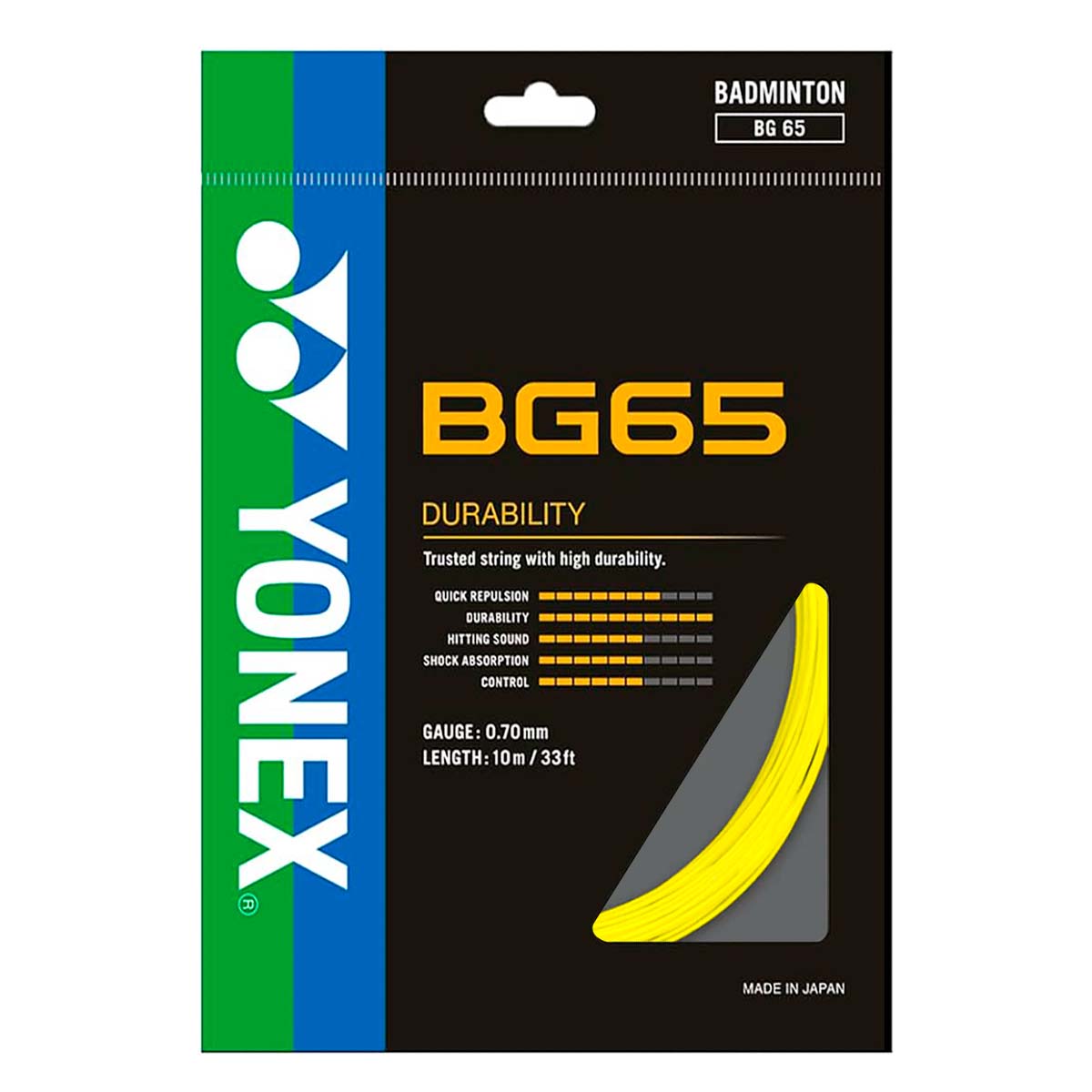 Диаметр бадминтонной струны Yonex BG65 равен 0,70 мм. Это проверенный диаметр, который обеспечивает высокую стойкость и мягкое чувство при ударе.