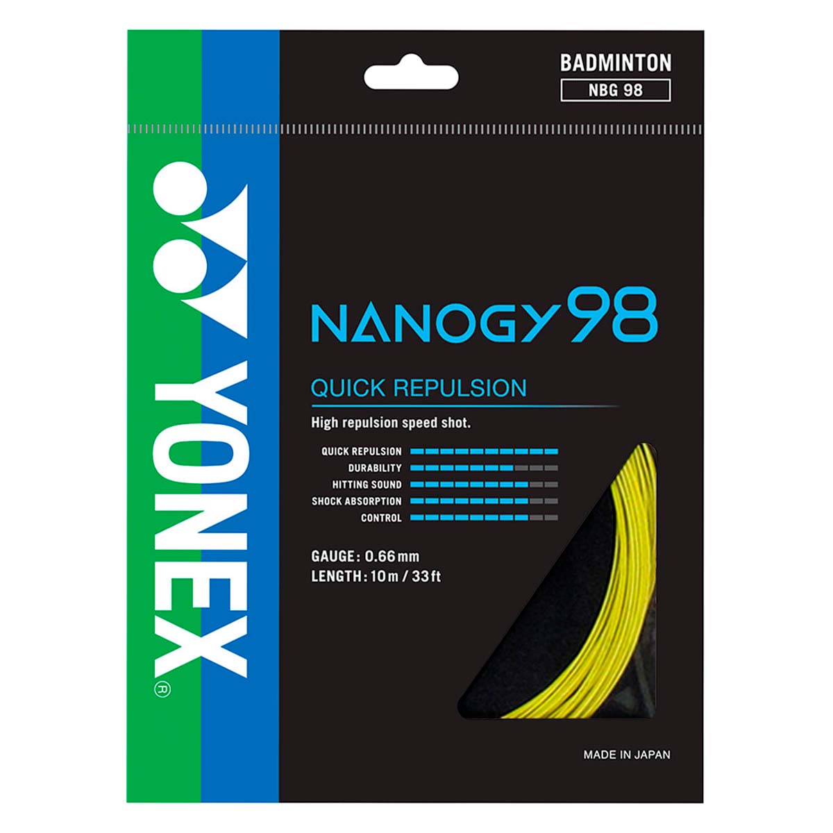 Бадминтонная струна Nanogy98 от Yonex желтого цвета - это высококачественная струна, которая обеспечивает точность ударов, мощность, отличный контроль и прочность.