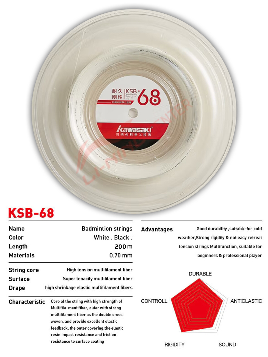 Струна для бадминтона Kawasaki KSB-68 - это высококачественный и надежный инструмент для любителей и профессиональных игроков.