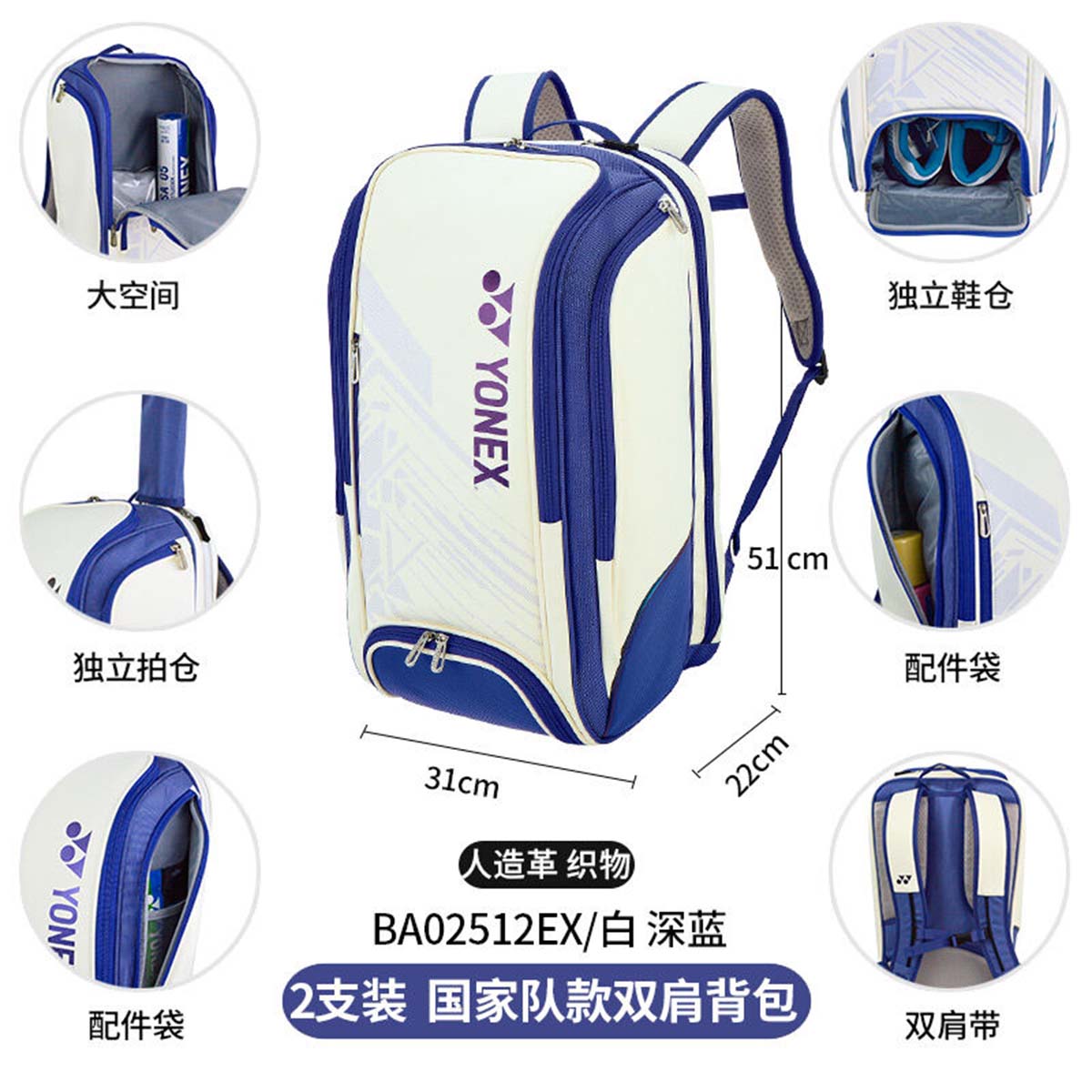 Рюкзак YONEX BA02512EX WHITE/DEEP BLUE для бадминтона