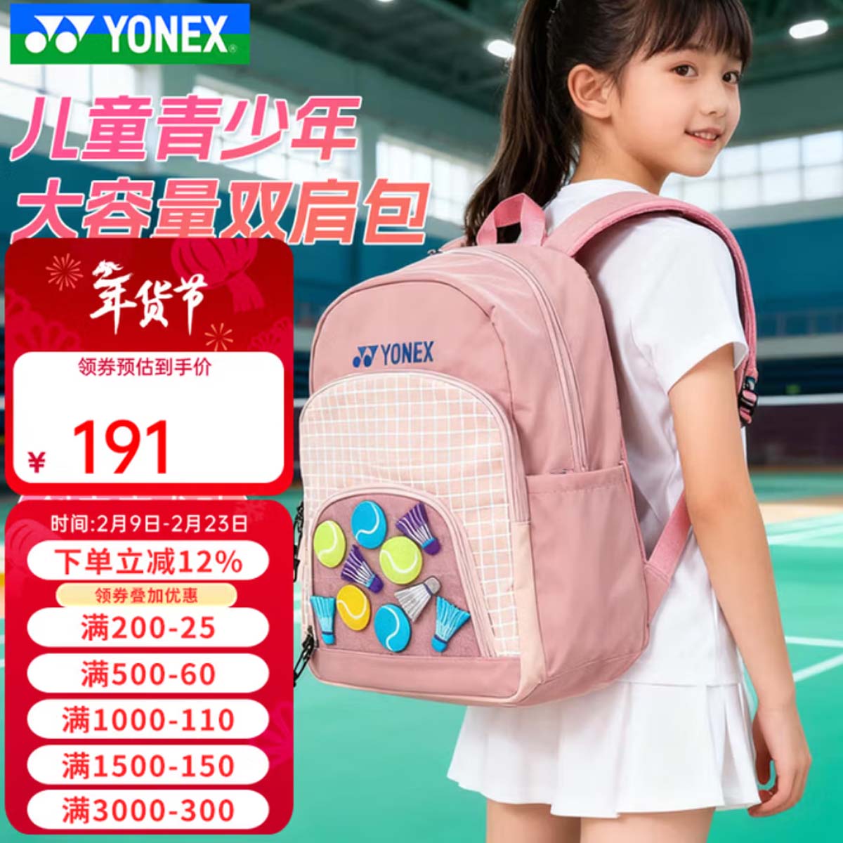 Рюкзак для бадминтонных ракеток YONEX BA239CR бледно-розового цвета разработан специально для детей и подростков.