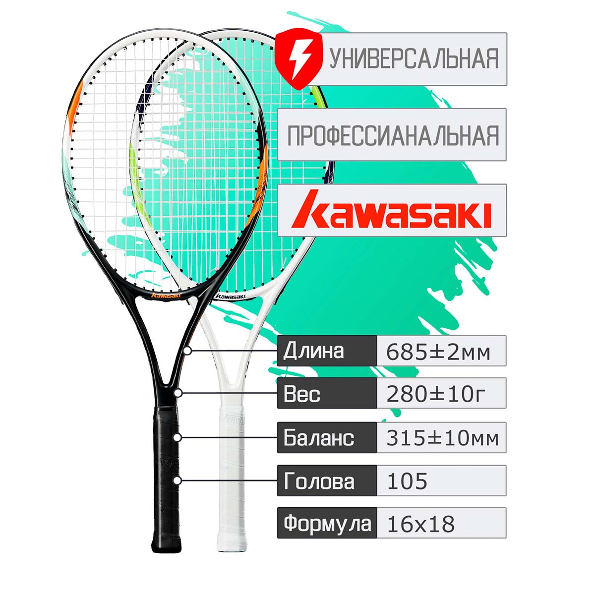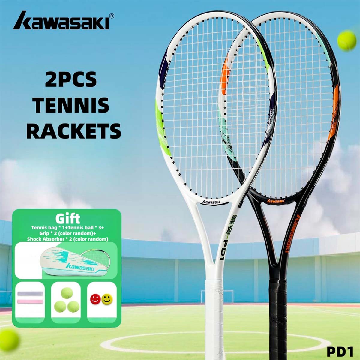Набор ракеток для тенниса KAWASAKI PD1 BLACK+YELLOW - идеальный старт для покорения корта
