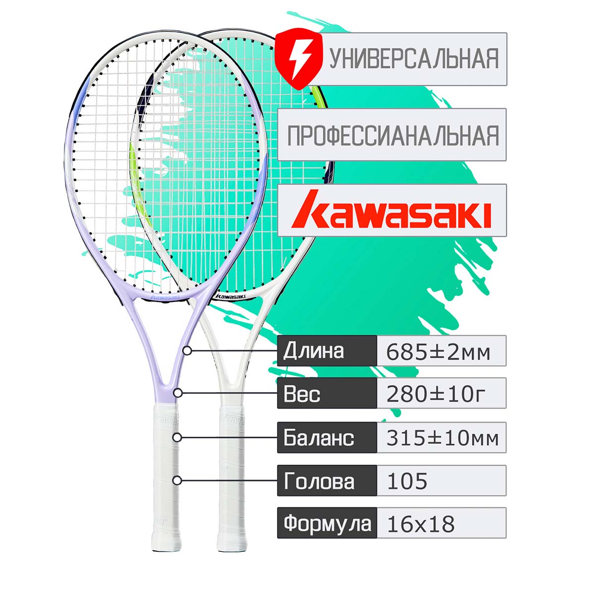 Набор ракеток для тенниса KAWASAKI PD1 PURPLE+YELLOW - идеальный старт для покорения корта