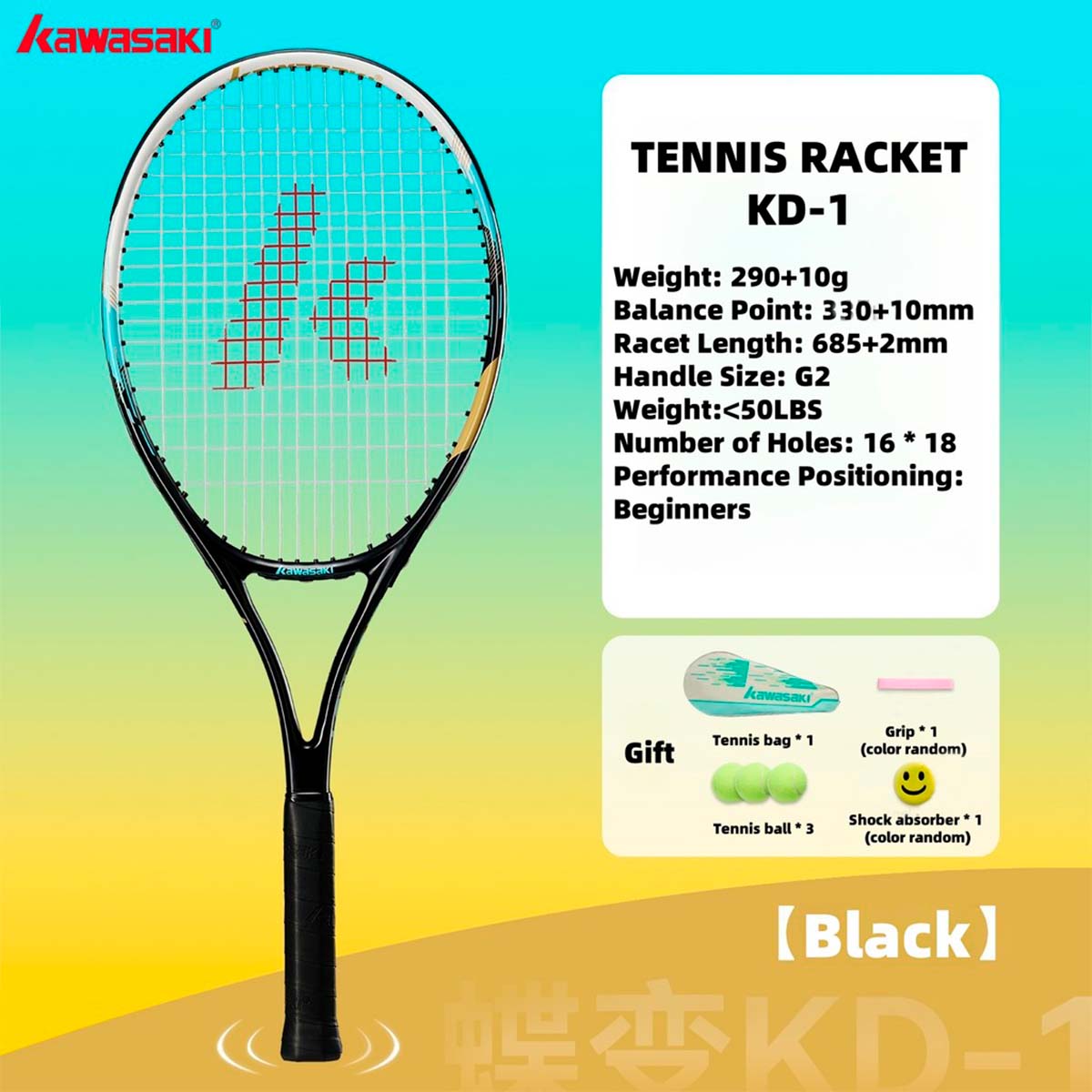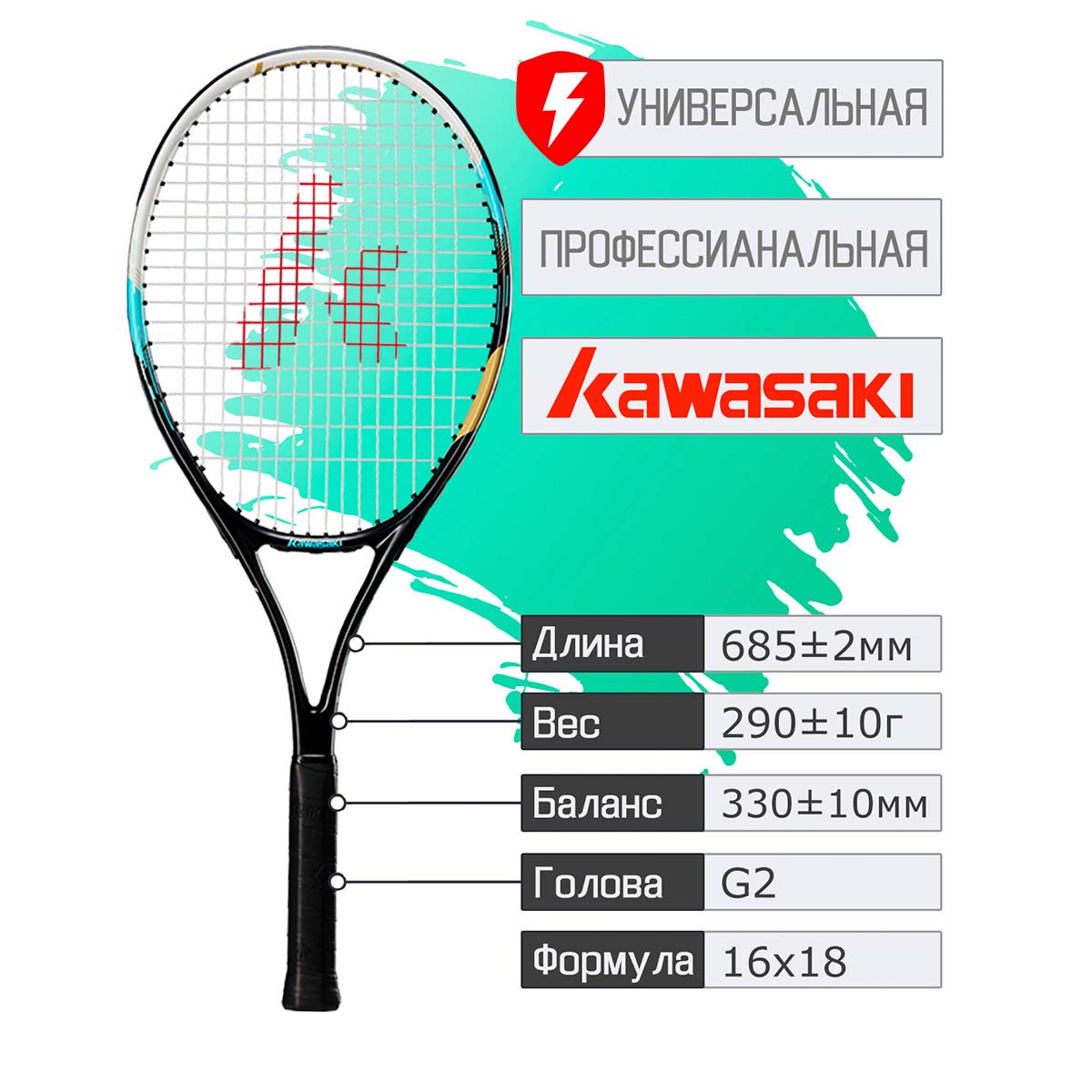 Теннис – динамичный и захватывающий вид спорта, требующий не только отменной физической формы, но и правильно подобранного инвентаря. Ракетка KAWASAKI KD1 черного цвета станет вашим надежным партнером на корте, помогая освоить азы игры и совершенствовать свои навыки.