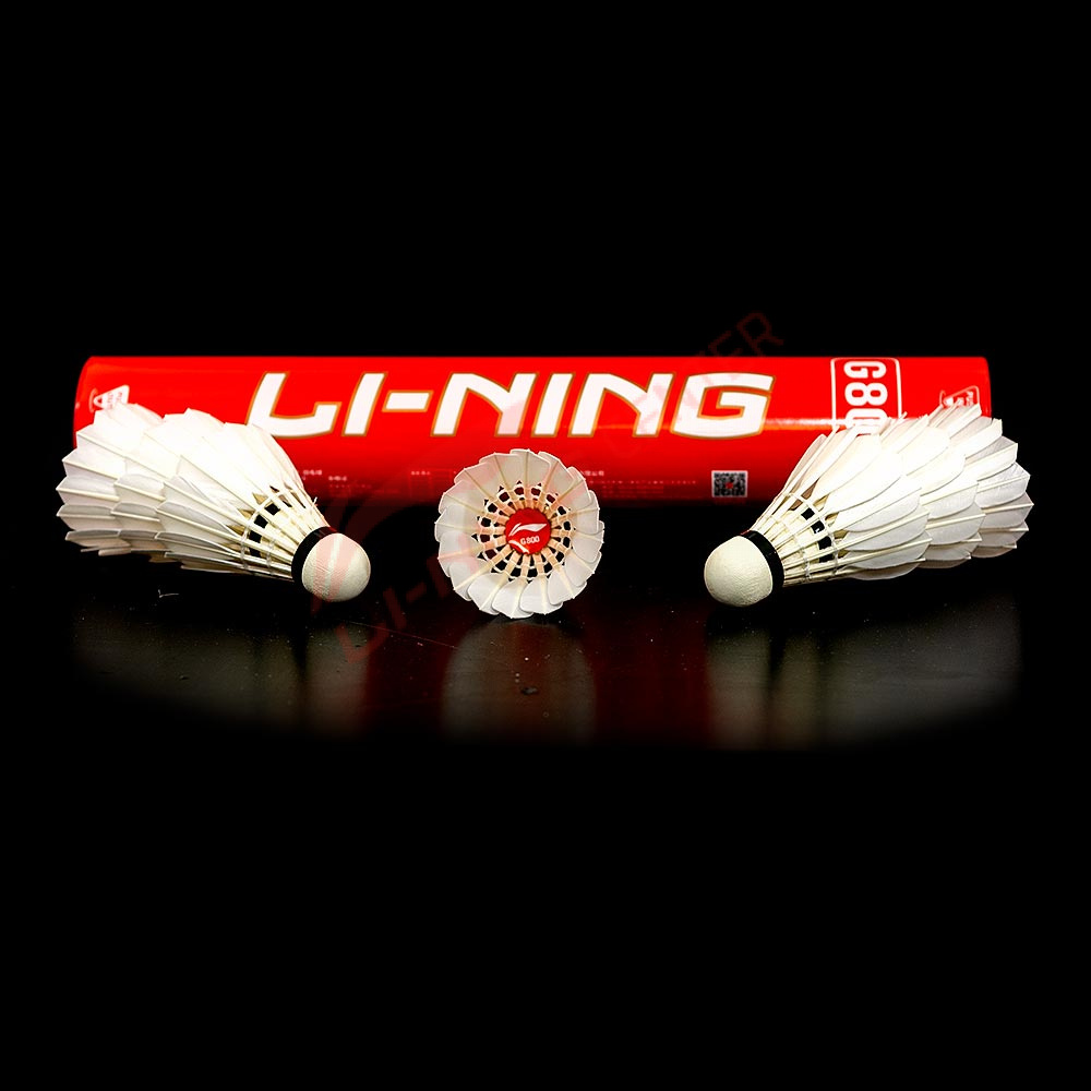 Премиальные турнирные воланы LI-NING G800. Изготовлены из натурального отборного гусиного пера и натуральной пробки, обтянутой тончайшим винилом. Предназначены для национальных и международных турниров. Высочайшая стойкость и точность, идеальная траектория полета. 12 штук в тубе. 77 скорость полета/